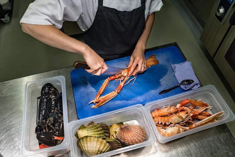 Sprell levande sjømat. Skaldyr som enno grip kring seg med klørne i det du set deg til bords.